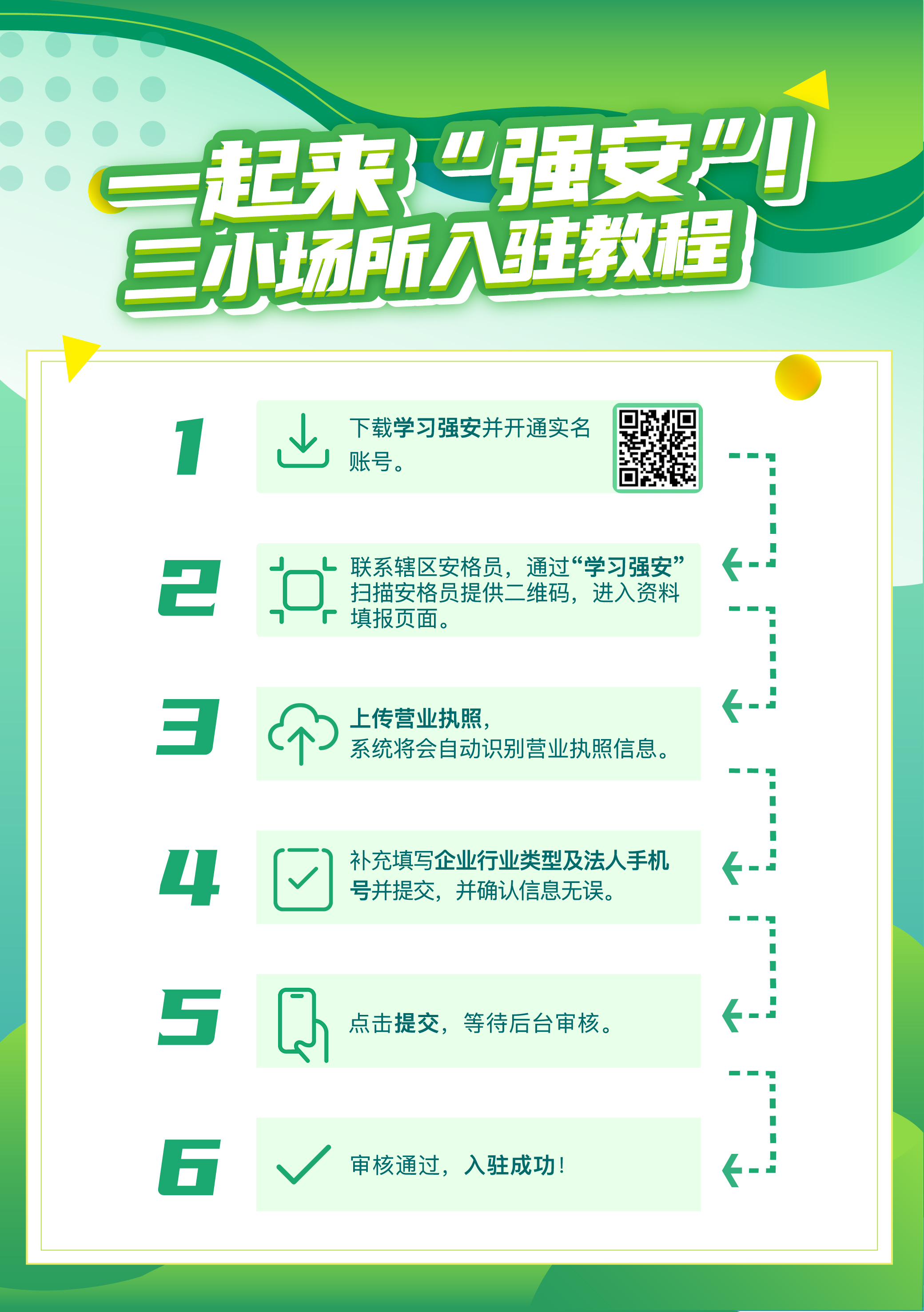 其中,区三小场所入驻数以通过学习强安生成的“强安推荐官”专属二维码扫码注册的三小场所法人数量为准。