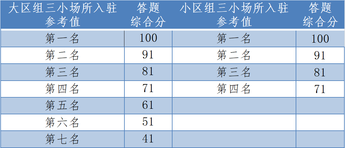 区积分=答题综合分+三小场所入驻分