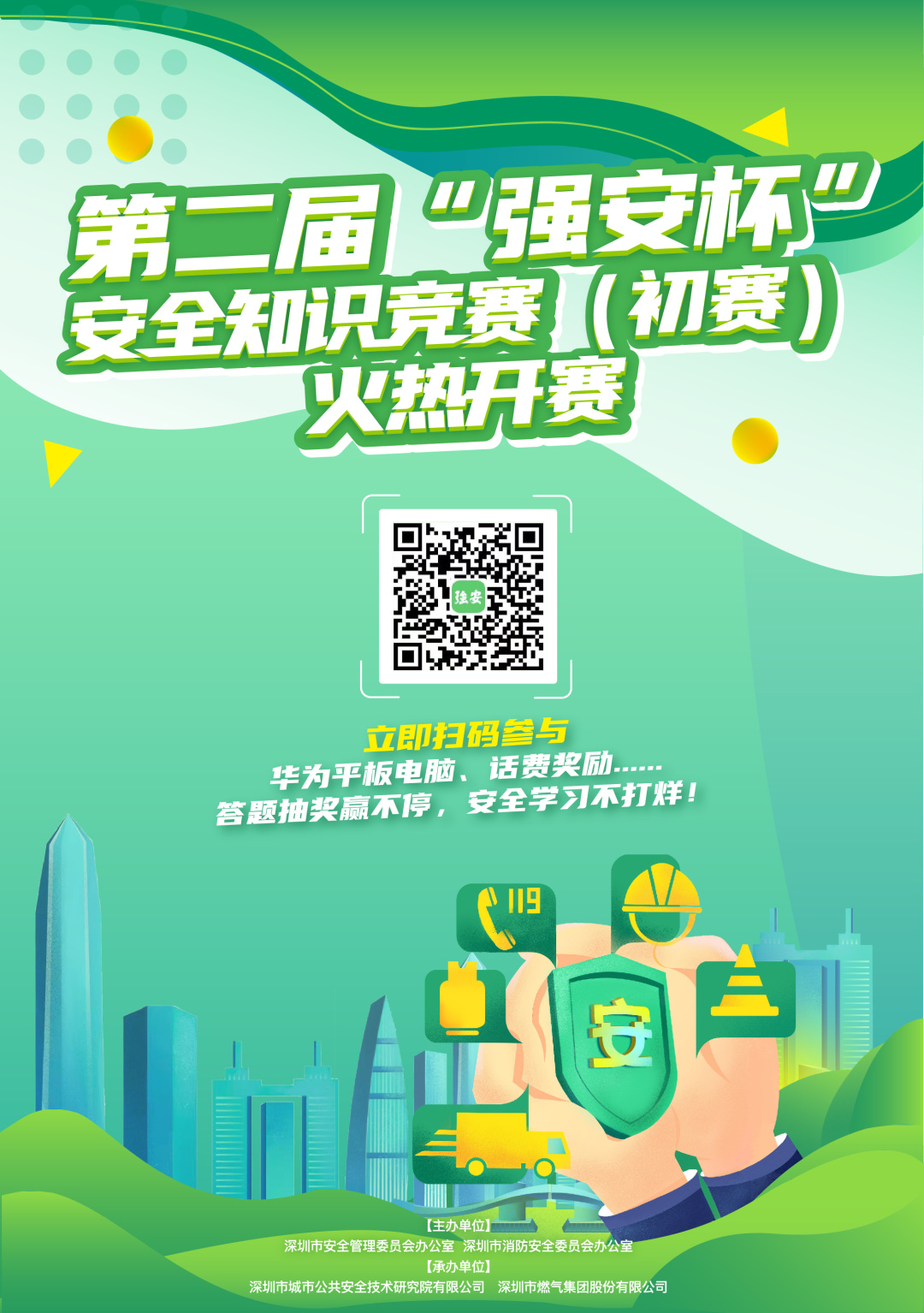 为深入贯彻习近平总书记关于应急管理工作的重要指示精神,营造全社会学安全、重安全、筑安全的浓厚氛围,提高机关事业单位、企业、市民的应急防护意识和能力,重点提升三小场所从业人员的安全知识水平,建立健全社会化消防工作网络,提升应急管理社会动员能力,经研究,市安委办、市消安委办定于2021年10月18日至11月1日,依托“学习强安”平台开展全市第二届“强安杯”安全知识竞赛(初赛)活动。