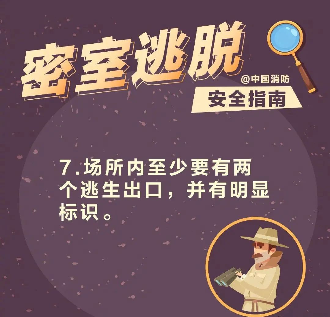 针对密室逃脱类场所火灾风险大的问题,应急管理部消防救援局印发《密室逃脱类场所火灾风险指南(试行)》《密室逃脱类场所火灾风险检查指引(试行)》,要求从业单位对照《风险指南》《检查指引》自查自改,相关部门、单位严查严管,确保安全。