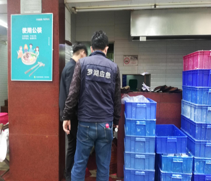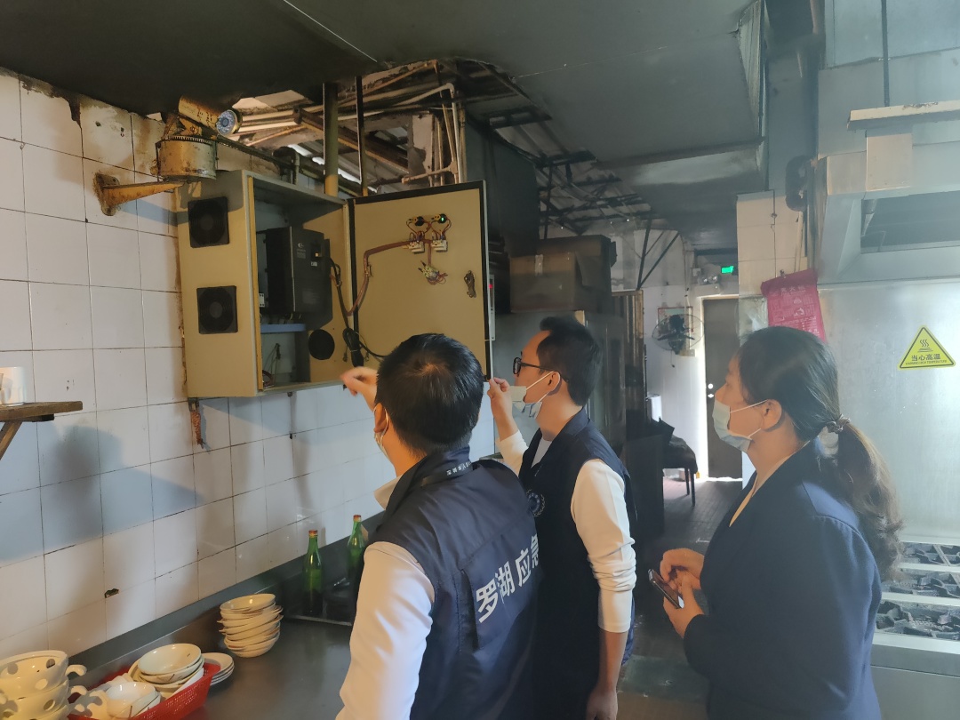 10月22日上午,罗湖区应急管理局执法科联合南湖街道,深入检查深圳市烟草罗湖公司、深圳大龙焱餐饮管理有限公司、深圳市唐悦宫餐饮管理有限公司等物业管理单位和餐饮企业,并对其主要负责人及安全管理员等宣贯新《安全生产法》。检查当天,检查组重点检查了企业燃气器报警装置是否故障、配电箱内部是否有屏护板、高温热水机是否张贴警示标识、防烟面具和灭火器是否固定在墙难以取用等。