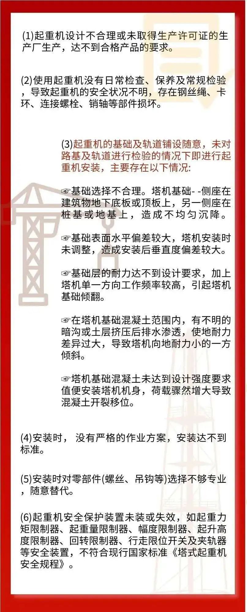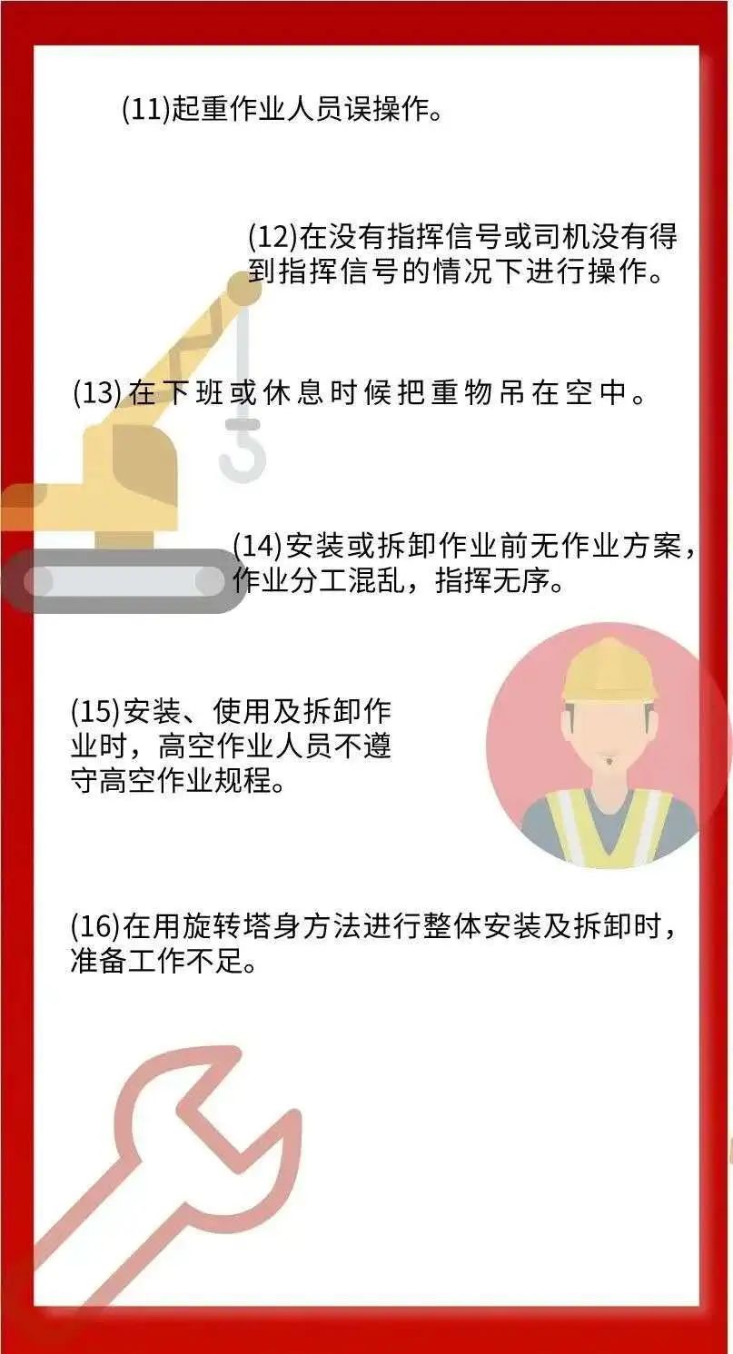 2021年10月31日上午7点22分,上海杨浦区平凉路临青路口一在建项目工地塔吊施工作业时塔吊发生折断倒塌事故,造成1名死亡,2名受伤。据现场工人透露,该起事故系因为吊装PC构件材料时发生倾斜倒塌,从上图可以看出此项目竖向、楼板均采用PC构件,装配率较高。是否因吊装PC构件超限导致塔吊倾倒,需官方进一步调查。PC吊装属于危险性较大分部分项工程,许多地区吊装前应对吊装方案进行专家论证,论证过程也十分严格;塔吊选型,最远端吊重、项目最重PC板、PC最远吊装距离、PC堆场、PC装卸位置、塔吊限位等等都是保证安全吊装的重要参数。塔式起重机常见的事故包括脱钩、钢丝绳折断、安全防护装置缺乏或失灵、吊物坠落、起重机倾翻和碰撞致伤等事故类型。塔吊事故造成的原因主要分为人为因素、设备因素、环境因素三个方面。人为因素主要是指管理者或操作者存在侥幸心理没有按照操作规程操作及误操作,具体要点如下:设备因素是设备未在要求的设计、制造、安装、使用、维修和保养下,造成设备部分或全部功能的失效,埋下安全隐患。● 因雷电、 阵风、龙卷风、台风、地震等强自然灾害造成的出轨、倒塌、倾翻等设备事故。来源:深圳应急管理、中国模板脚手架网、广东安全生产杂志