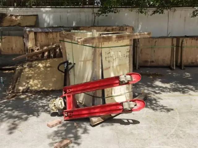 直接将货物放置在手动叉车上。工作人员为了将叉车从货物底下抽出,用一个人推、一个人托的方式,结果货物倾倒压住工作人员,导致其死亡。