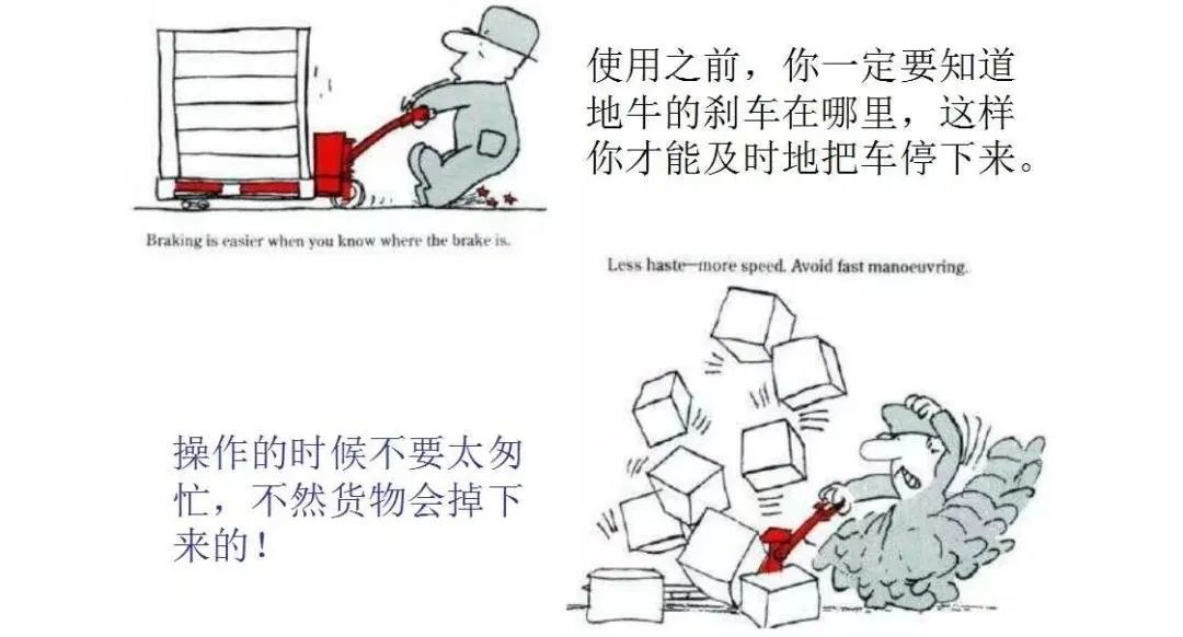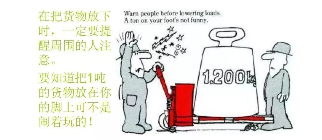 事故原因:5名作业人员在货车车箱内用手动叉车搬运机械设备至车厢尾部时,由于机械设备超重导致车头翘起及车厢向后倾斜,手动叉车连同机械设备倾倒至地面并砸中其中一名作业人员,导致事故发生。分析以上三起事故,均是手动叉车超载运输或操作违章所导致。因此,在使用手动叉车时应避免超载运输,在装卸相对较重、高度较高高、体积较大的货物时,应充分做好风险分析和安全防护措施,坚决避免人员站在货物可能发生倾倒的方向。也会出人命!类似事故频发