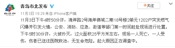 11月3日下午4时许,青岛海岸路2号海岸锦城小区发生火灾,现场有巨大的爆炸声。19时29分,市北发布火情通报。