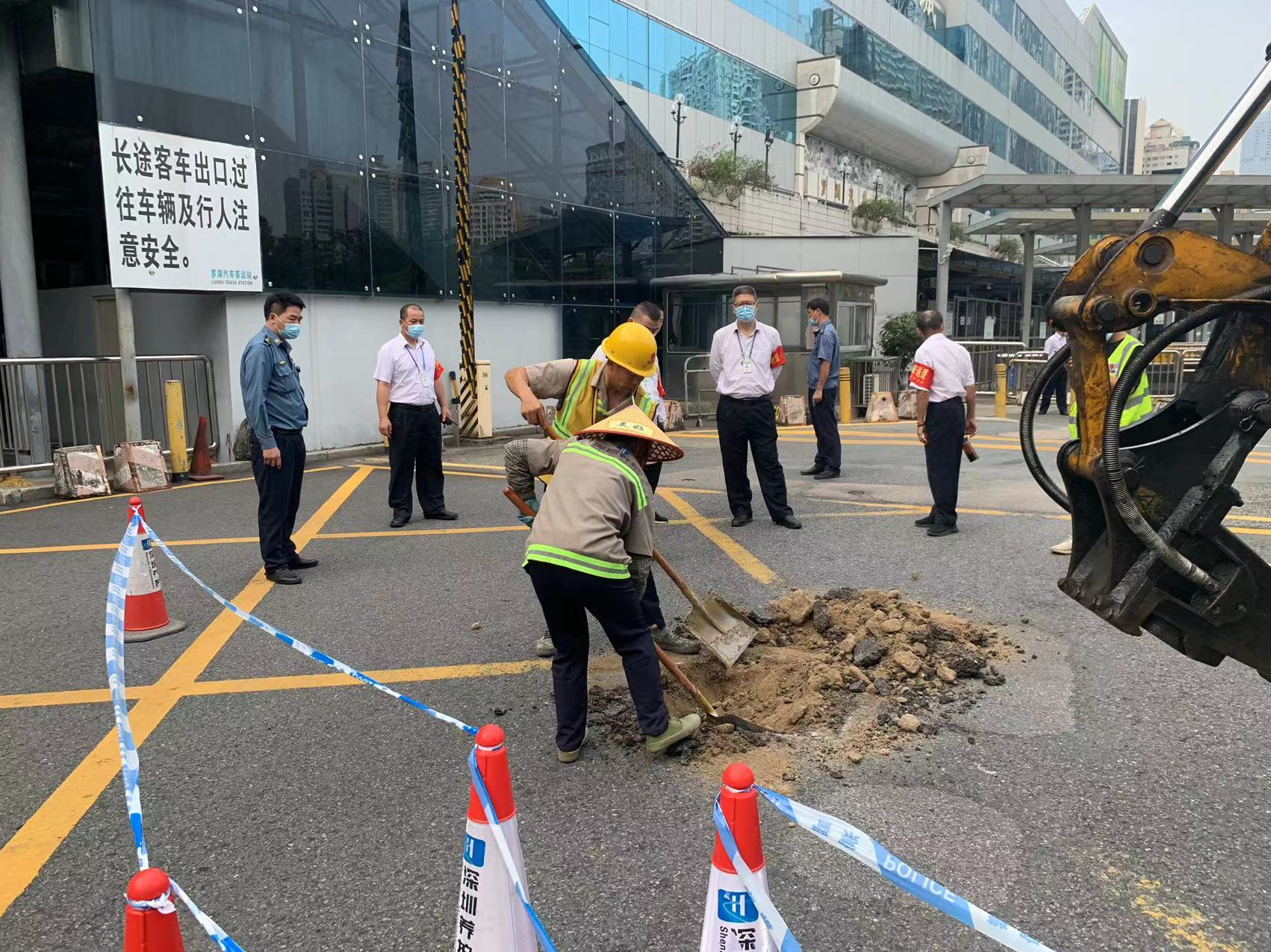 此次隐患处置由市交通运输局罗湖局交通部门牵头。处置过程中,相关单位协调配合,有序开展各项隐患治理工作,及时高效地处置了三处Ⅲ级地面疏松隐患,消除了地面坍塌事故风险,保障了行人及车辆安全。目前,各隐患点已处置完毕并恢复通车。