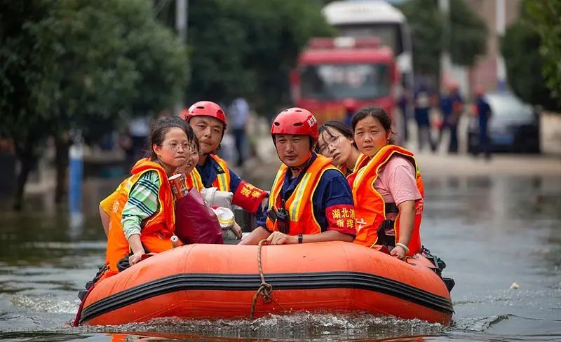 2020年7月19日,江西九江,援赣的湖北消防救援总队消防指战员们送结束考试的中考生回家。据统计,2020年主汛期,国家综合性消防救援队伍参加各类抗洪抢险救援2万余起,营救和疏散转移被困群众21万余人。国家安全生产应急救援队伍出动3万多人次,航空救援直升机飞行130架次。