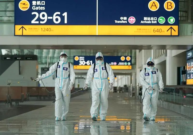 2020年4月3日,消防队员在航站楼进行消杀作业。转运、洗消,送水、送药,应急、值守……处处可见应急管理人员的身影;“网上审批”“容缺受理”“靠前服务”等,成为2020年应急管理工作高频词。在抗击新冠肺炎疫情国家级表彰名单中,应急管理系统14名个人、3个集体、2名共产党员名列其中。