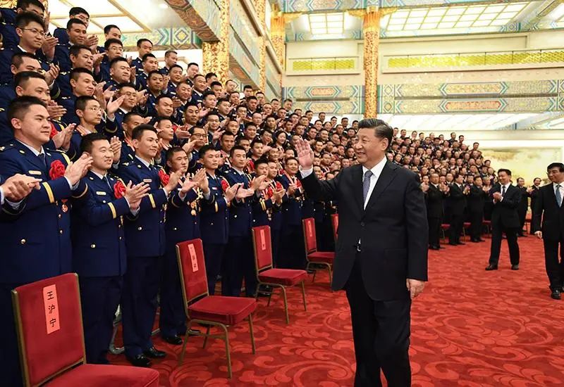 11月5日,党和国家领导人习近平、王沪宁、韩正等在北京人民大会堂会见全国应急管理系统先进模范和消防忠诚卫士表彰大会代表。11月5日上午,习近平总书记在北京亲切会见全国应急管理系统先进模范和消防忠诚卫士表彰大会代表,向他们表示热烈祝贺,并向全国应急管理系统广大干部和消防救援指战员致以诚挚问候。
