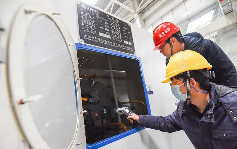 2020年12月10日,湖北省荆州市江陵县应急管理局的工作人员在湖北华电江陵发电有限公司检查设备运行情况。2020年,疫情防控和复工复产中,各级应急管理部门和消防救援队伍组织8.5万多个安全指导组,为涉疫场所和各类生产经营单位开展“点对点”安全指导服务,排查整改问题隐患300多万项。