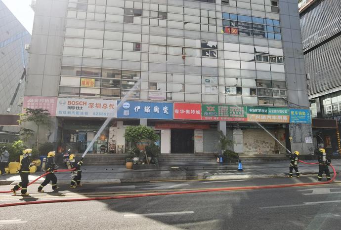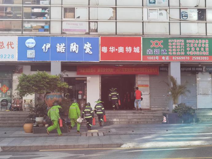 “报告值班室……三楼仓库发生火情,火势较大,请尽快派人处理……”记者现场看到,粤华奥特城汽配用品市场三楼因电线线路短路引发火灾,现场浓烟滚滚,火势较大,且有向上蔓延的风险。情况紧急,值班保安人员立即向街道应急值班室、119等相关单位报告警情。接到火情报警后,深圳市粤华物业管理有限公司奥特城管理处启动应急预案,各相关应急组赶赴现场进行火灾扑救。在各救援队伍的通力合作下,火情得到了妥善处置,风险解除。