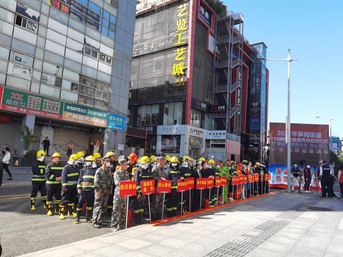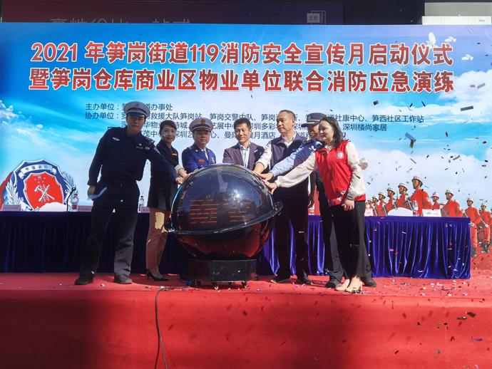 11月9日,罗湖区笋岗街道“119”消防安全宣传月活动顺利启动。此次活动以“落实消防责任,防范安全风险”为主题,在粤华奥特城汽配用品市场开展。活动分四个阶段进行,内容涵盖应急演练、技能展示、消防技能培训及观众实操体验四方面,以此增强全民消防安全素质,提高消防应急防火实战操作技能水平。出席此次活动的领导和嘉宾包括笋岗街道党工委书记毕祥伟,笋岗街道党工委委员、应急办主任林潮辉,罗湖区市场监督管理局笋岗所所长陈育梅,笋岗派出所副所长康昆,罗湖区消防救援大队副大队长胡峦,罗湖区交警大队笋岗中队中队长刘志强,笋西社区党委书记、工作站站长周淼清。