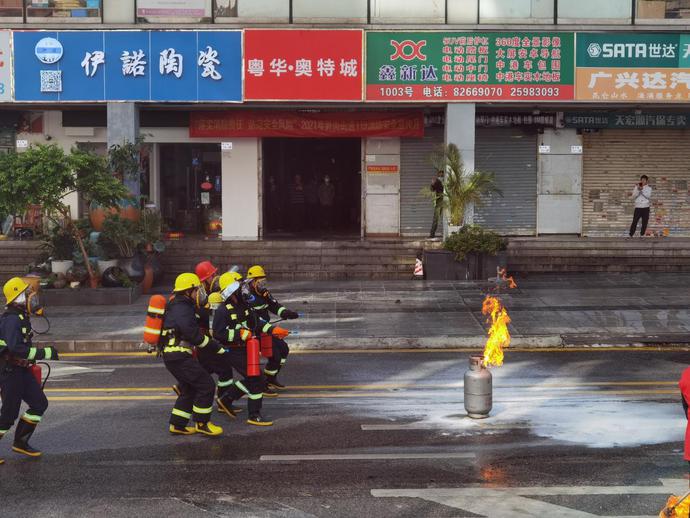 高楼层发生火灾如何灭?木料自燃了怎么办?液化燃气瓶泄气起火了如何处置?……记者了解到,实战操作是此次活动的最大亮点。活动现场,由笋岗街道城中村兼职消防队和企业义务组成的五支消防队伍开展消防灭火实战技能展示,分别模拟不同火灾事故情景,向市民展示了70米五人车操、60米灭油火操、两盘水带快速出水控火操、手台机动泵操、60米灭煤气瓶操等实战技能,进一步提升物业应急队伍扑救初期火灾的处置能力。