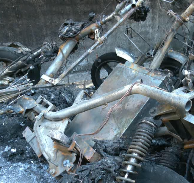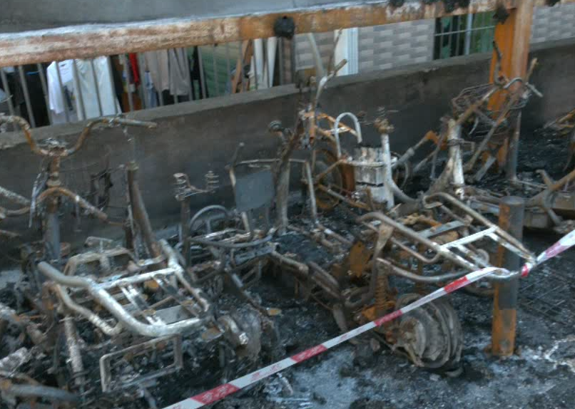 烧毁了停放的28辆电动自行车