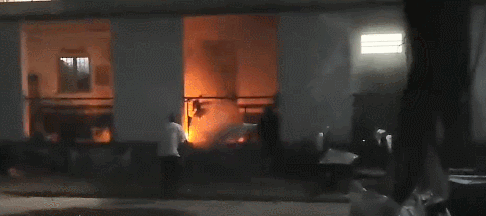 一个电动车棚突然起火