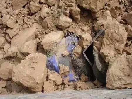 7、基坑、土石方挖土时土壁不按规定留设边坡(甚至负坡度),缺乏支护或支护不良,土质不良或出现地下水、地表水的渗透,土壁经不起重载侧压力或遇外力振动、冲击等因素造成土壁失稳滑坡坍塌。