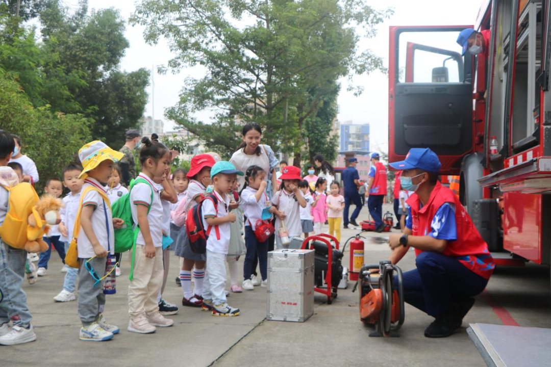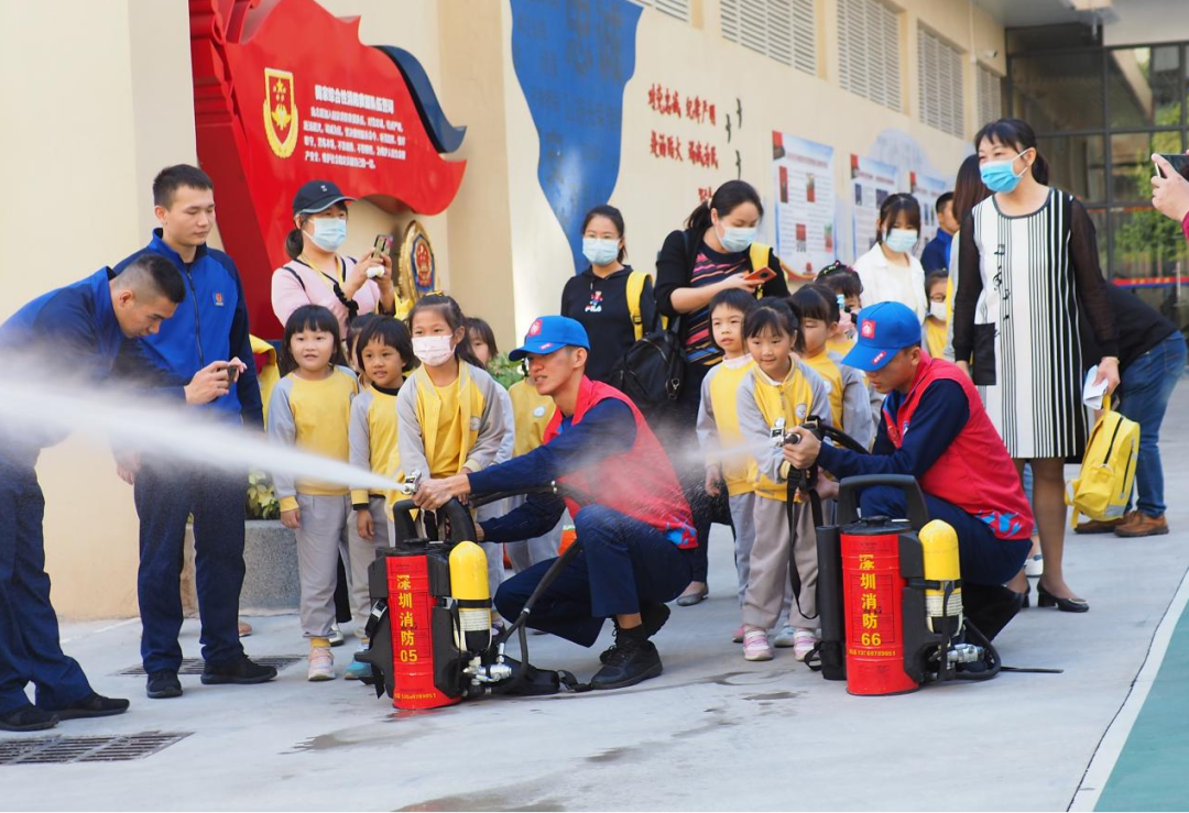罗湖区消防志愿者用通俗易懂的语言给小朋友们讲解防火、逃生、着火报警等消防安全常识,并指引他们穿戴消防员个人防护装备、乘坐消防车,让萌娃们切身体验当“消防员小战士”。