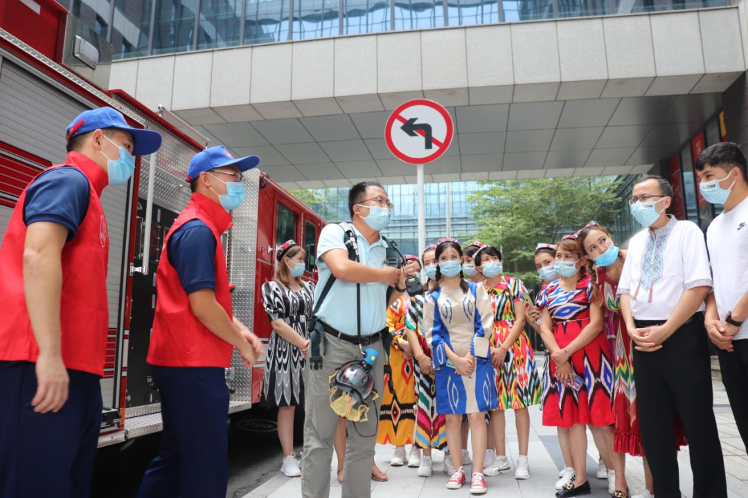 福田消防救援大队联合福田区党群服务中心、深圳市对口支援新疆(喀什)社会工作站开展“我为群众办实事,民族团结情更深”消防宣传教育活动。消防指战员和消防志愿者在现场带领新疆维吾尔族青年朋友参观消防主战车辆,介绍灭火战斗装备器材。