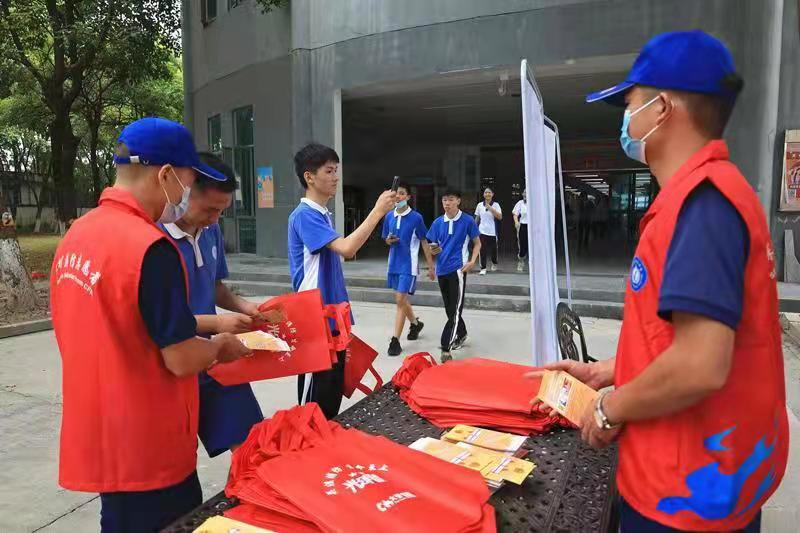光明区消防志愿者进入校园发放消防安全知识宣传册,为同学们科普消防安全知识。
