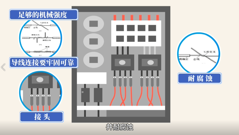 〢导线连接要牢固可靠,接头应具有足够的机械强度,并耐腐蚀。
