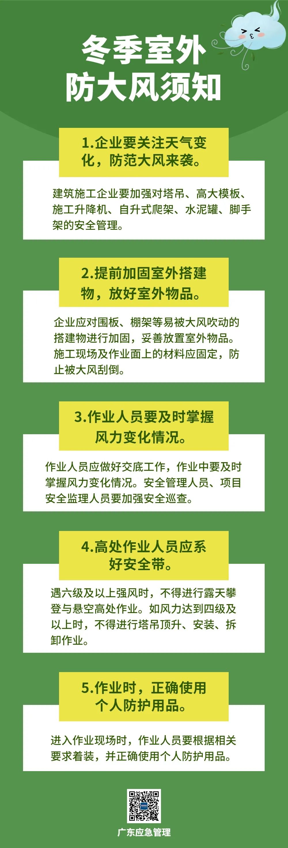 冬季大风天气多,一些室外设施和固定措施不完善的搭建物易被大风吹倒、吹落,可引发坍塌及物体打击事故。