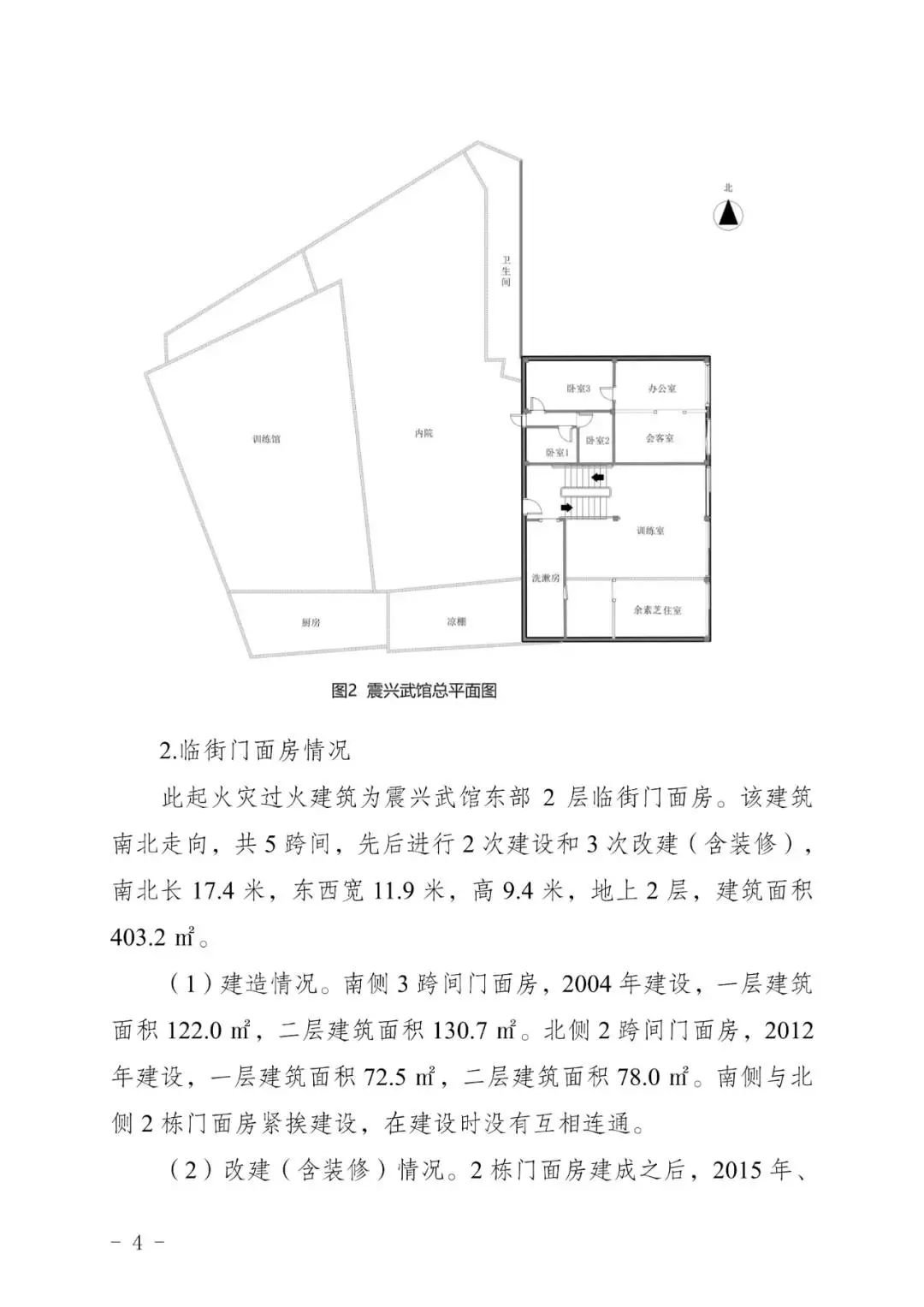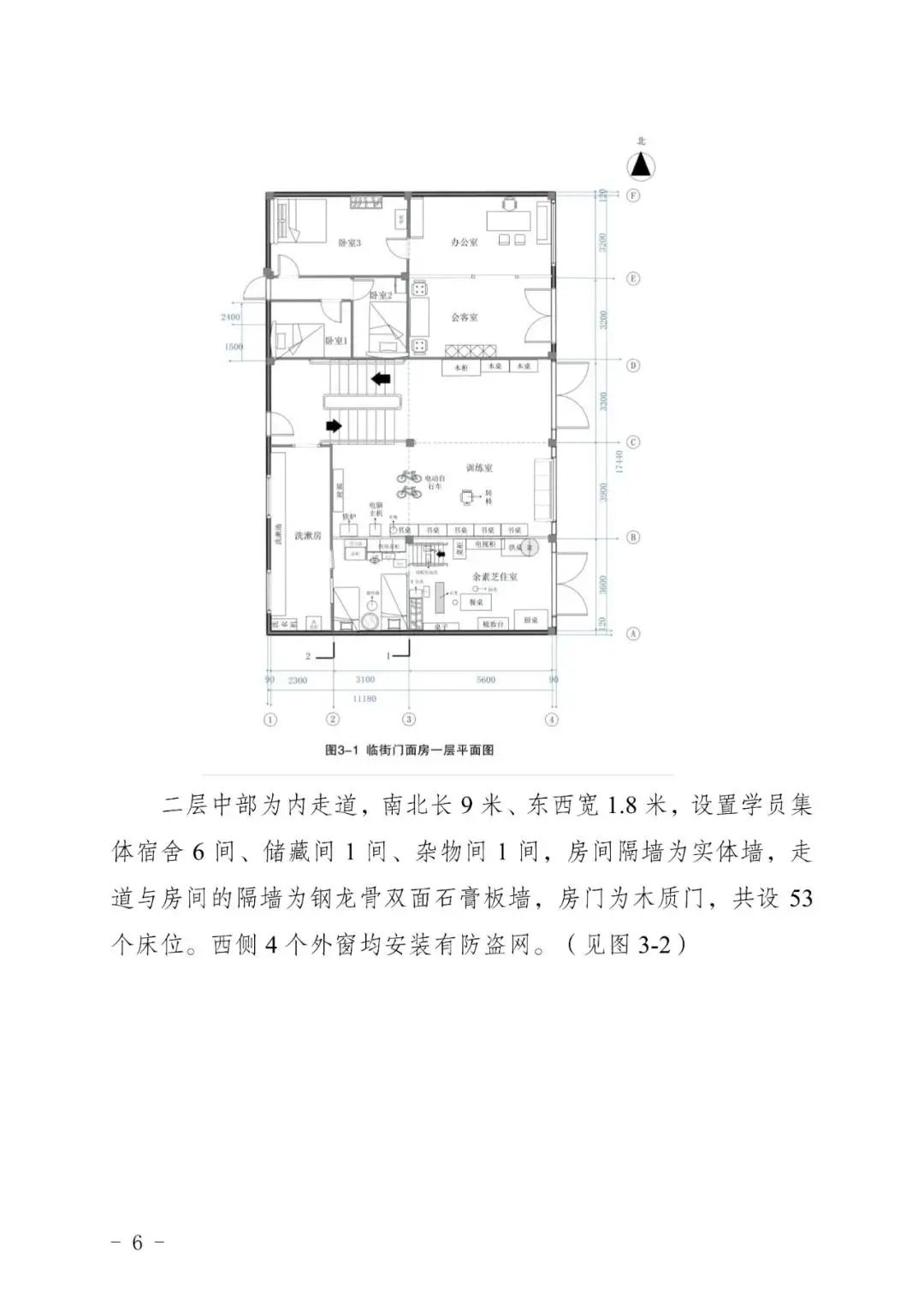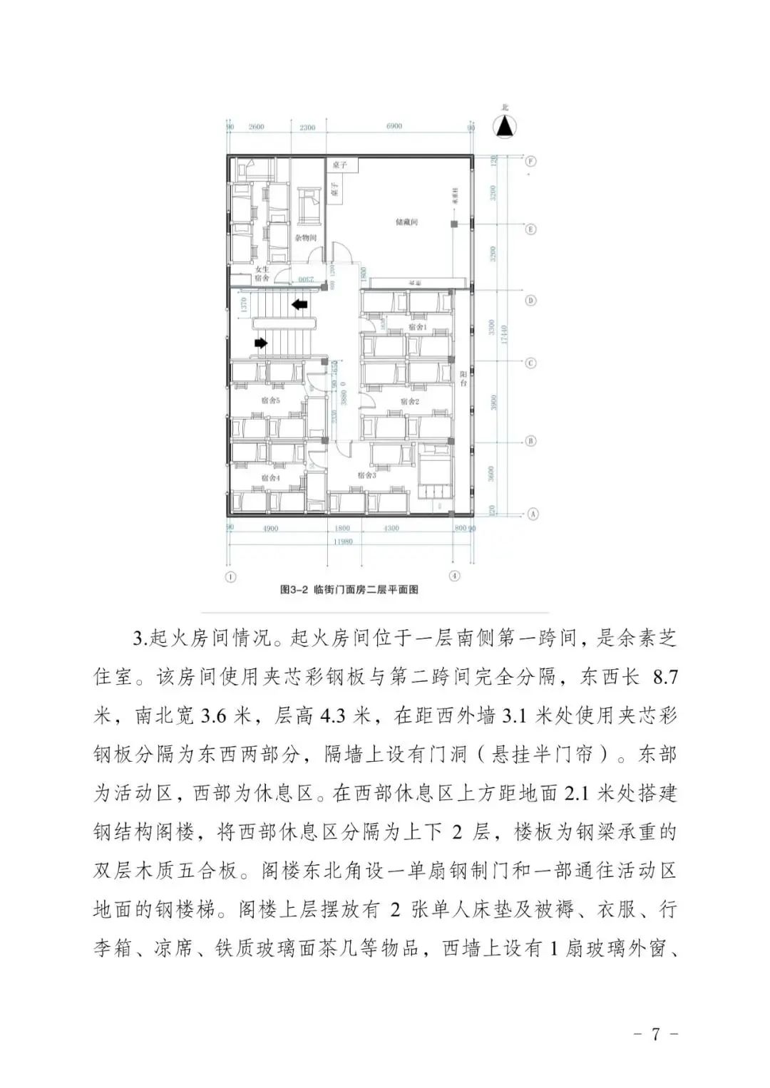 1. 建筑内未形成有效的防火分隔:起火房间(余素芝住室)与训练室之间的隔墙采用易燃的聚苯乙烯夹芯彩钢板,二层部分隔墙为钢龙骨双面石膏板墙,隔墙耐火等级低,一、二层之间的楼梯为敞开式楼梯,起不到有效的防火防烟分隔作用。