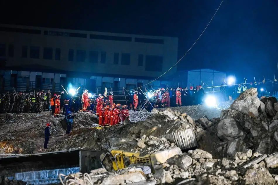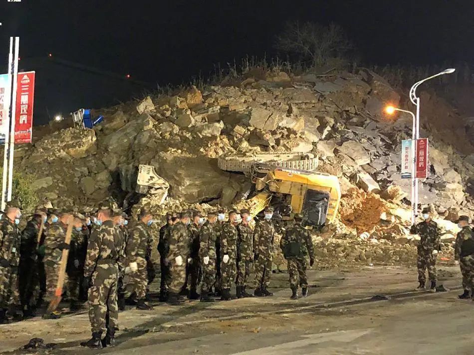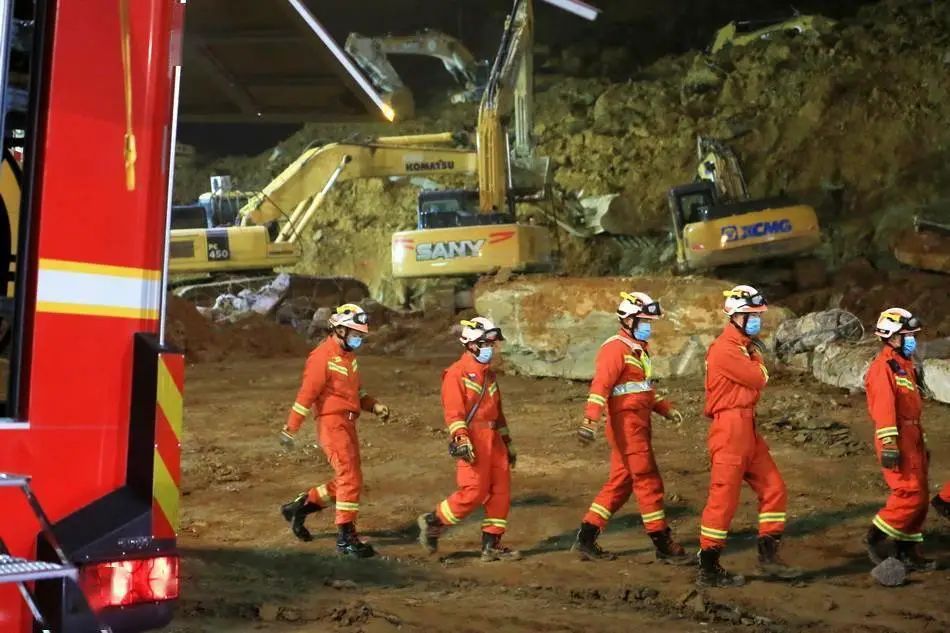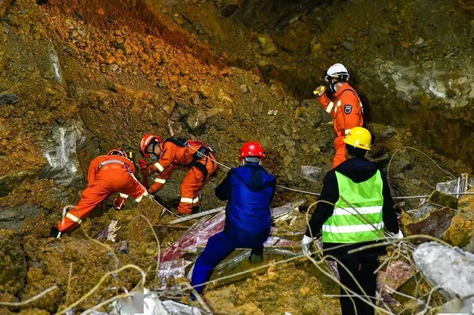 2022年1月4日凌晨,搜救人员在山体滑坡现场展开搜救