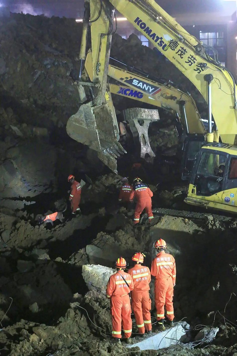 事故发生后,贵州省消防救援总队迅速调集贵阳、六盘水等地消防力量、应急设备参加救援。截至1月4日12时,官方已投入各方救援力量1000余人,多部门通力协作、通宵作业,现场已清理土方2万余方。事故现场已救出被困人员13人,其中10人无生命体征,3人已第一时间送往医院救治、生命体征平稳,仍有4人失联。