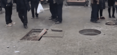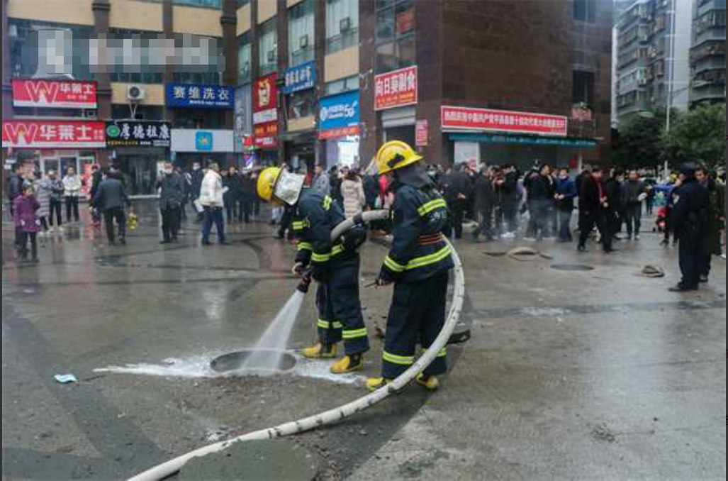 一广场内有井盖被炸飞