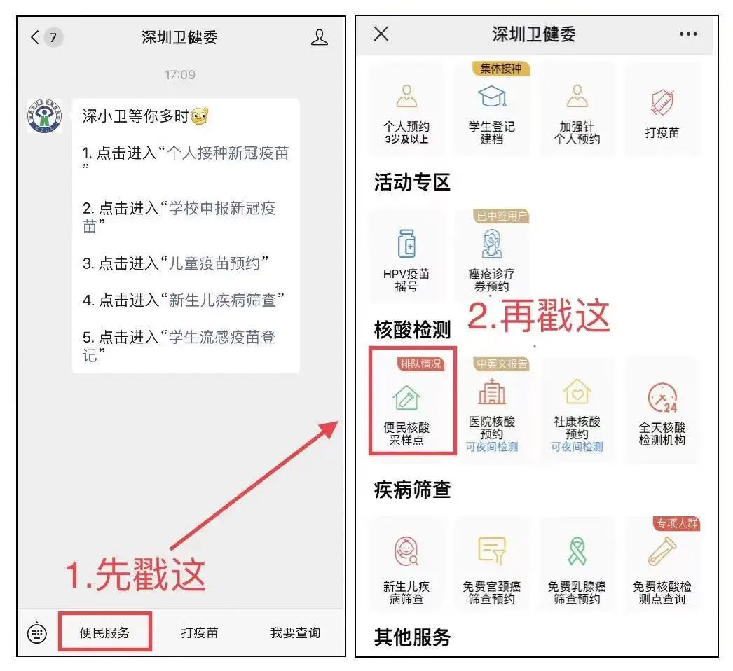 2. 点击“便民服务”——点击“便民核酸采样点”