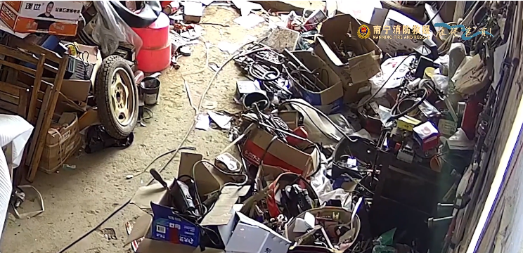 民房内堆放大量铅酸电池、轮胎和纸皮等可燃物,一楼至二楼楼顶楼道上均堆放大量轮胎和杂物,生活电器、生产用电设备杂乱堆放,建筑内没有设置防火分隔,各房间未安装房门,火灾蔓延速度快,燃烧迅速,热值高、烟雾大,导致一楼的浓烟迅速向楼上蔓延,封闭了唯一的疏散通道。