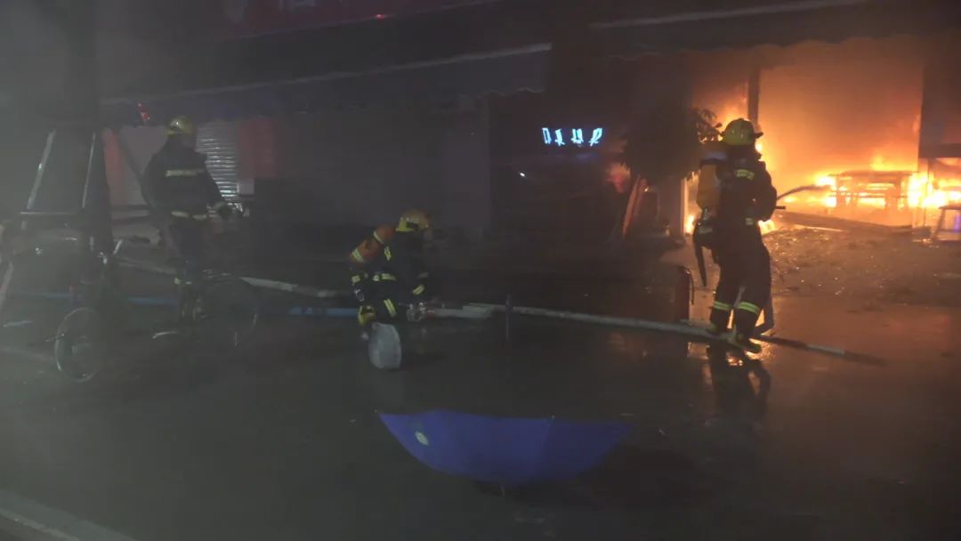 2月22日05时19分许,广东中山市三乡消防救援站接到报警称,三乡镇某商铺发生火灾,情况紧急。三乡消防救援站立即出动赶赴现场救援。到场后,发现起火位置为商铺一楼,浓烟滚滚,火势正处于猛烈燃烧阶段,浓烟已蔓延到楼上住户。消防员边扑火边搜救,并从店铺后面右边楼梯上楼把4名被困人员救出。