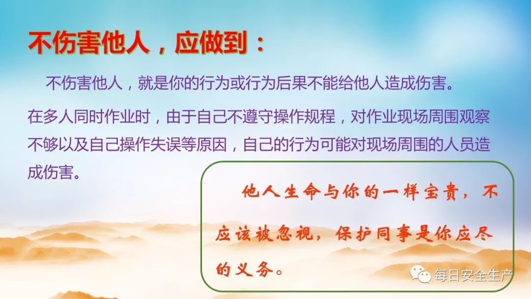 因为一旦出现事故很可能会影响到周围的其他人员,所以“保护他人不被伤害”其实也是间接地“保护自己不被他人伤害”。