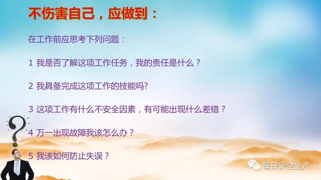 工作中要避免他人错误操作或其他问题造成的隐患伤害到自己。