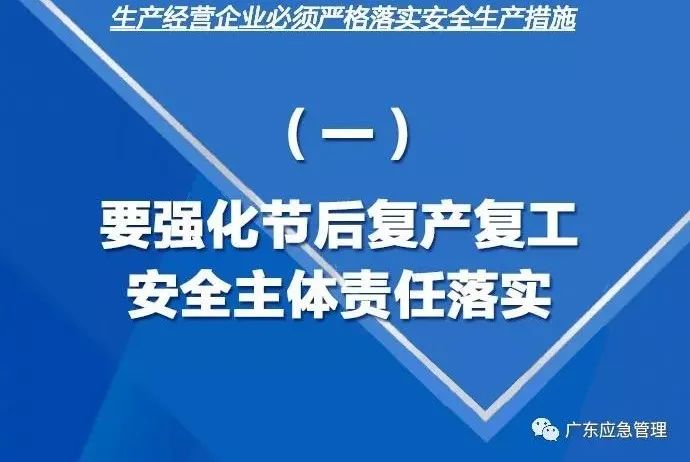 此外,广东省安委办、省应急管理厅还下发文件,要求企业复工复产须严格落实“六个一”措施: