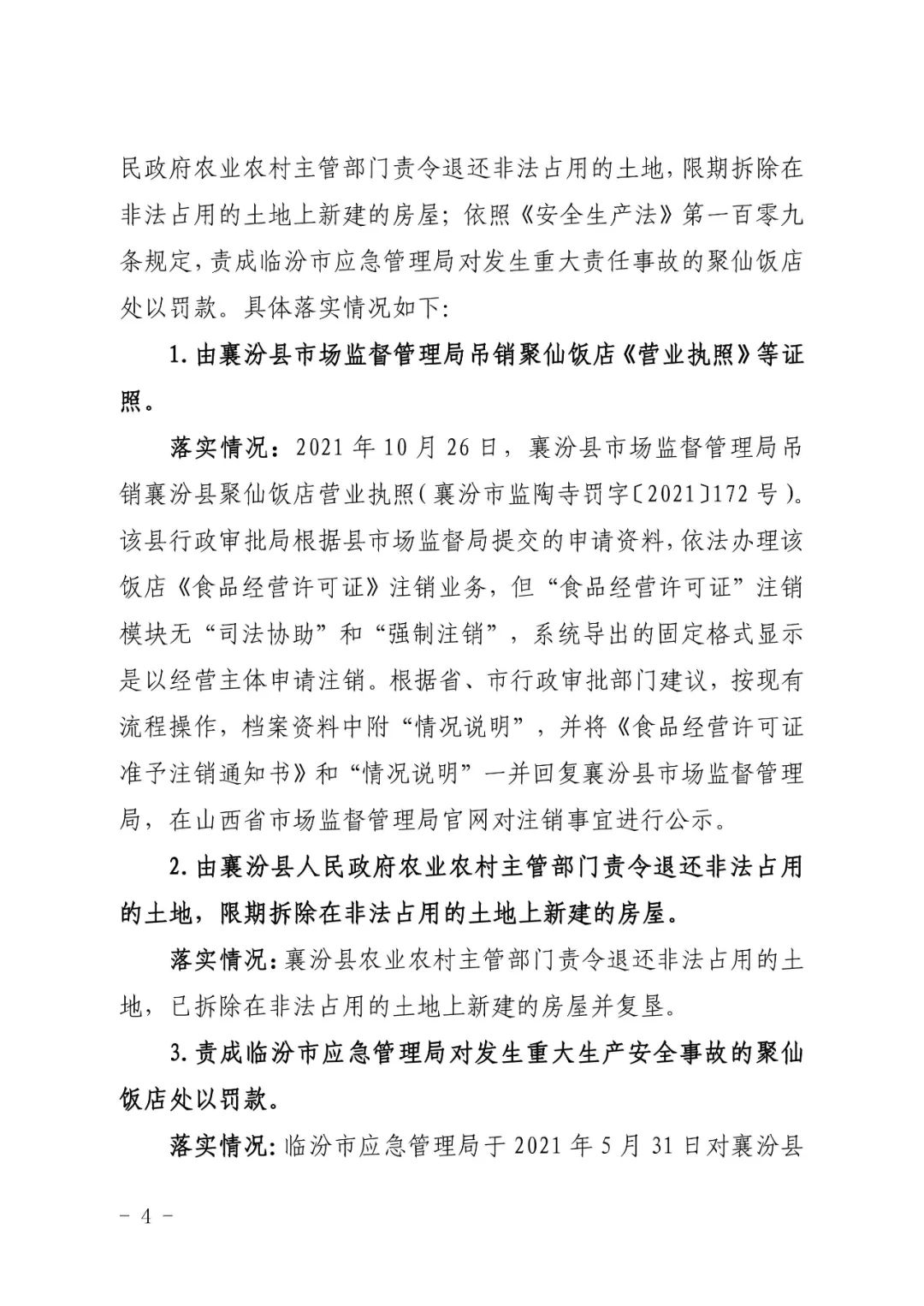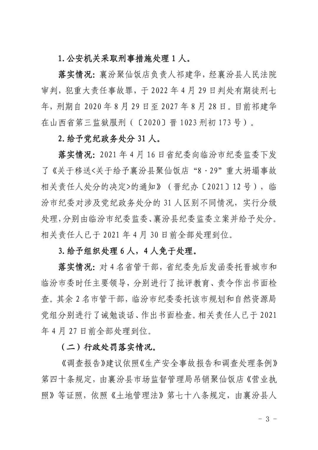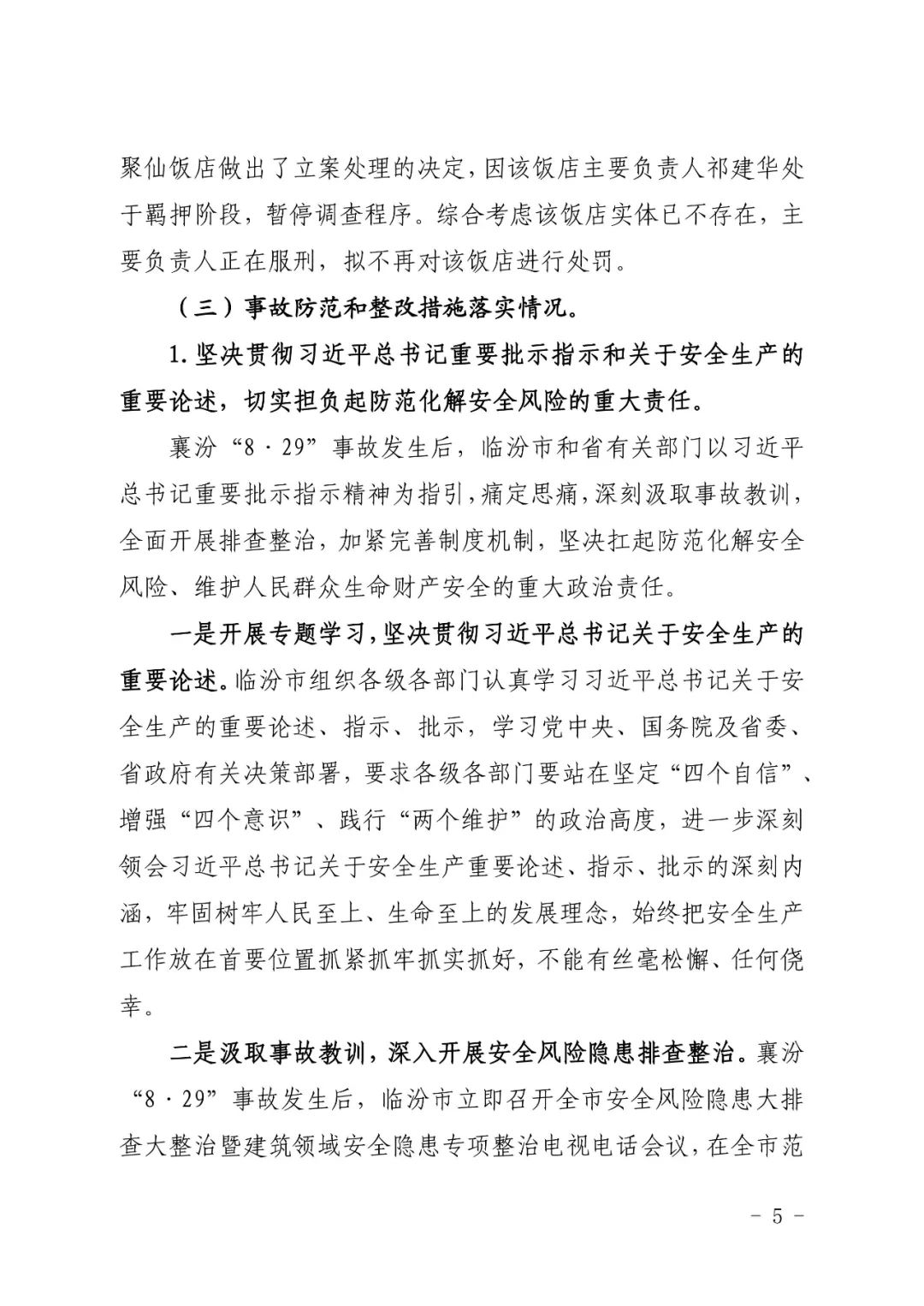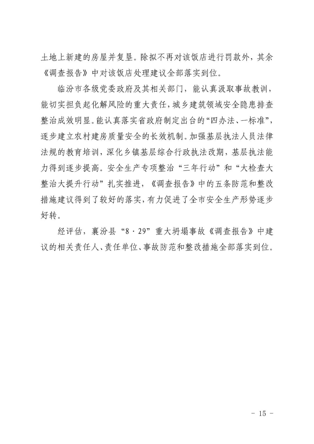 日前,山西省应急管理厅发布《临汾市襄汾县聚仙饭店“8·29”重大坍塌事故防范和整改措施落实情况评估报告》(以下简称评估报告)。