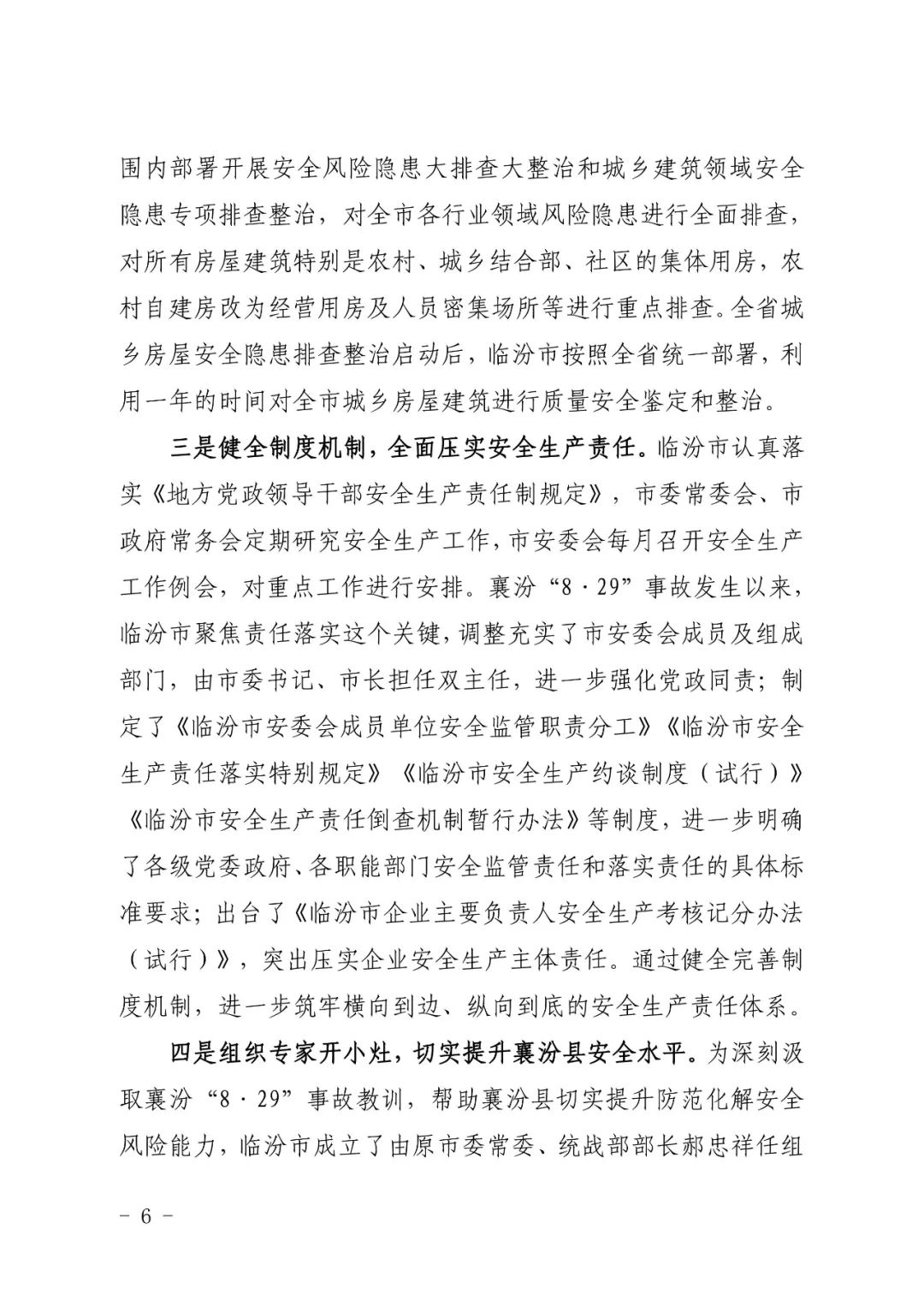 按照山西省政府对《临汾市襄汾县聚仙饭店“8·29”重大坍塌事故调查报告》批复要求,山西省安委办成立了由省安委办主任、省应急厅厅长王启瑞担任评估组组长,省安委办副主任、省应急厅副厅长刘世华任副组长,省有关部门和临汾市人民政府及相关专家组成省安委办评估组,会同省纪委监委评估组,对临汾市襄汾县聚仙饭店“8·29”重大坍塌事故防范和整改措施落实情况进行了评估。评估报告显示,襄汾聚仙饭店负责人祁建华,经襄汾县人民法院审判,犯重大责任事故罪,于2022年4月29日判处有期徒刑七年,刑期自2020年8月29日至2027年8月28日。目前祁建华在山西省第三监狱服刑。2021年4月16日省纪委向临汾市纪委监委下发了《关于移送<关于给予襄汾县聚仙饭店“8·29”重大坍塌事故相关责任人处分的决定>的通知》,临汾市纪委对涉及党纪政务处分的31人区别不同情况,实行分级处理,分别由临汾市纪委监委、襄汾县纪委监委立案并给予处分。相关责任人已于2021年4月30日前全部处理到位。第一条 为认真贯彻落实党中央、国务院决策部署,充分发挥事故调查处理对加强和改进安全生产工作的促进作用,督促生产安全事故防范和整改措施有效落实,从根本上消除事故隐患、从根本上解决问题,防范生产安全事故发生,保障人民群众生命安全,根据《中华人民共和国安全生产法》《中共中央 国务院关于推进安全生产领域改革发展的意见》等有关规定,制定本办法。第二条 生产安全事故调查报告提出的防范和整改措施落实情况的评估工作适用本办法。法律、行政法规另有规定的,从其规定。第三条 事故结案后10个月至1年内,负责事故调查的地方政府和国务院有关部门要组织开展评估,具体工作可以由相应安全生产委员会或安全生产委员会办公室组织实施。第四条 评估工作组原则上由参加事故调查的部门组成,可以邀请相应纪检监察机关按照职责同步开展工作。根据工作需要,可以聘请相关专业技术服务机构或专家参加。评估工作跨行政区域的,相关地方应当积极配合并提供有关情况和资料。第五条 评估工作组依据生产安全事故调查报告,逐项对照防范和整改措施建议,重点评估以下内容:(一)事故发生单位、相关企业和有关政府、部门落实事故防范和整改措施采取的具体举措以及工作成效;树牢安全发展理念,健全安全生产责任制,吸取事故教训,举一反三加强安全生产工作情况;(二)对事故责任单位和责任人员行政处罚建议等落实情况。纪检监察机关参加评估工作的,对有关部门处理意见和有关公职人员责任追究落实情况进行评估。(一)资料审查。对照事故调查报告和结案通知要求,对事故涉及的地方政府和有关部门提交的事故防范和整改措施落实情况报告进行核查;(二)座谈问询。了解事故涉及的有关地方政府、相关部门和单位整改工作开展情况;(三)查阅文件。对事故整改涉及的有关会议纪要、文件资料、相关文书、财务凭证、人事档案等进行核实;(四)走访核查。赴责任人员单位或羁押场所核查有关情况,赴相关地区和单位、涉事企业、同类企业实地检查整改落实情况。第七条 评估工作组对现场检查中发现的安全隐患和违法违规问题,应当及时反馈地方政府和有关部门,并提出整改落实建议。第八条 现场评估工作结束后,评估工作组要形成评估报告。评估报告主要内容应当包括评估工作过程、总体评估意见、事故防范和整改措施落实情况、评估发现的主要问题和相关工作建议等,并附问题清单、工作建议清单以及经验做法清单。评估报告起草过程中,应当充分听取参加评估工作组的有关部门意见。第九条 评估工作组按程序向组织开展事故防范和整改措施落实情况评估工作的地方政府或国务院有关部门提交评估报告。第十条 组织评估工作的地方政府应当依据评估报告,向有关地区和部门反馈评估情况,并将评估报告报送上一级安全生产委员会办公室备案。评估工作由国务院有关部门组织开展的,评估报告要抄报国务院安委会办公室。特别重大事故的评估报告,由国务院安委会办公室报送国务院安全生产委员会,并向相关省级安全生产委员会反馈。第十一条 组织评估工作的地方政府或国务院有关部门对发现问题的处理:(一)发现事故防范和整改措施未落实、落实不到位或存在其他问题的,应当向相关地方政府和部门交办整改工作任务并持续跟踪、督促整改;(二)对重大问题悬而不决、重大风险隐患久拖不改,涉嫌失职渎职的,依法依规移交地方党委政府和纪检监察机关严肃追责问责;(三)发现对有关公职人员处理意见不落实以及追究刑事责任工作明显滞后的,向地方党委和相应纪检监察机关、人民法院和人民检察院通报情况,商请督促落实。第十二条 评估报告应当通过媒体或以政府信息公开方式及时向社会全文公开发布,接受社会监督。第十三条 各省级安全生产委员会以及法律法规规定的省级以上事故调查牵头部门可以根据本办法制定相应细化规定。来源:应急管理部、山西省应急管理厅、广东安全生产杂志