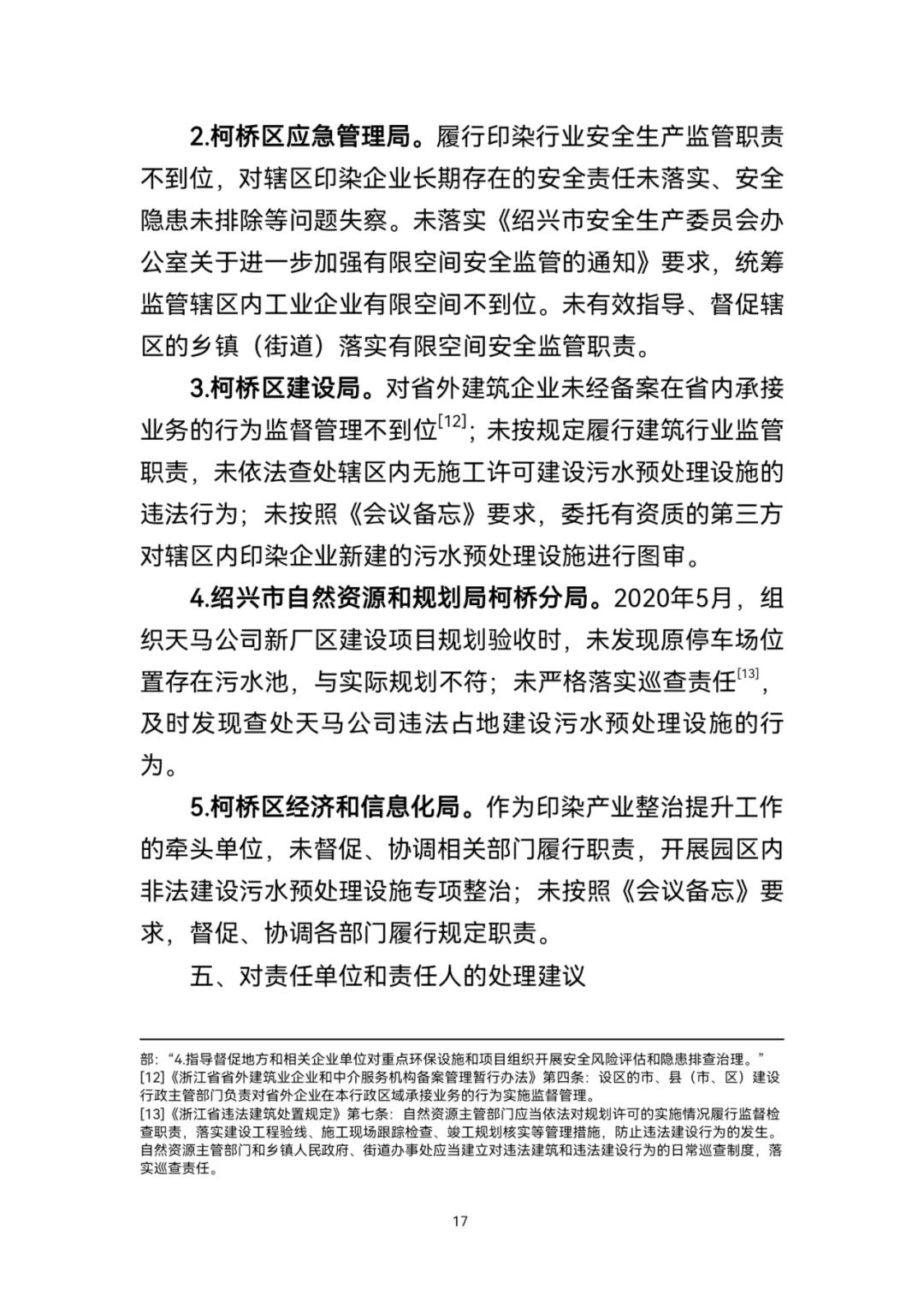 2.天马公司法定代表人,建议由柯桥区应急管理局依法予以行政处罚。
