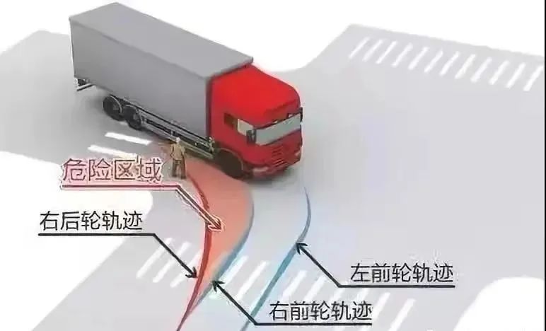 与大货车同时进入路口就算已拉开一定距离,也有可能因视线盲区被卷入车底。无论是对行人还是对机动车而言,都应该与大车保持安全距离,不要长时间与大车并行,更不要与大车抢行。