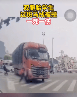 2021年4月6日,浙江温州,温州龙湾海城工贸南路工业城附近,一辆红色货车撞上两名身穿校服的学生。现场视频显示,事发地点就在斑马线边,事故导致被撞的两个孩子1死1伤。