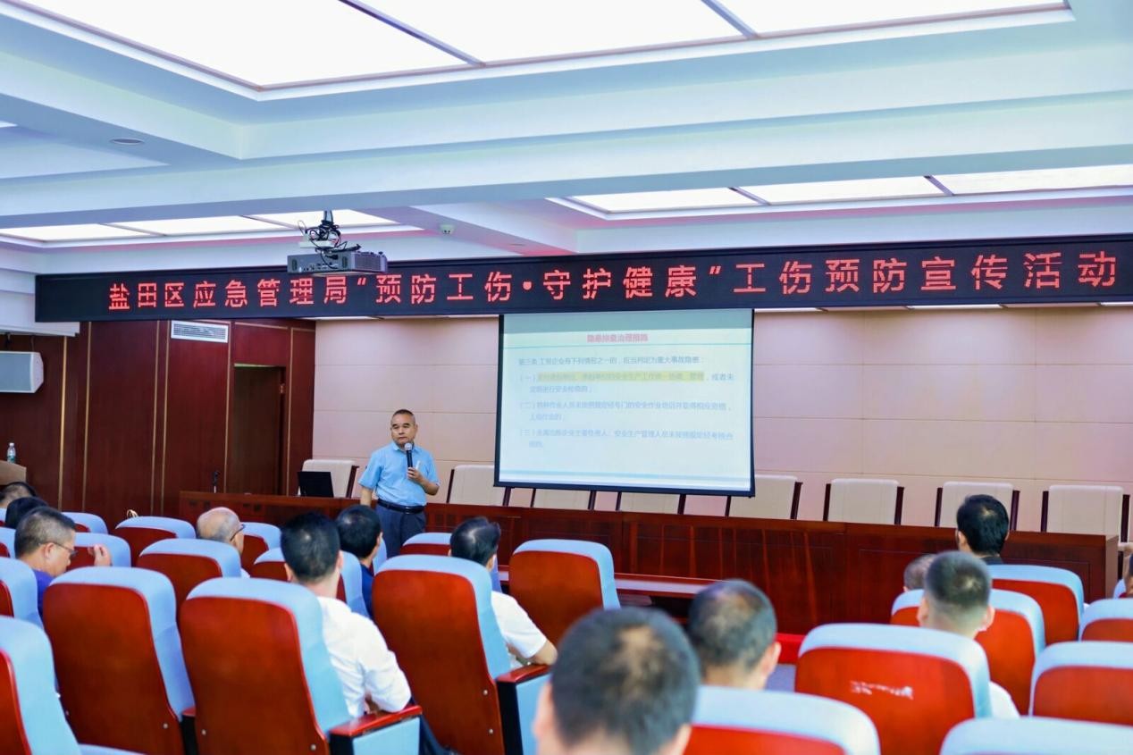 祸患常积于忽微,事故多缘于麻痹。为进一步普及工伤预防知识,强化用人单位工伤预防主体责任,提升职工工伤预防意识和能力,9月12日上午,盐田区应急管理局联合梅沙街道办事处举办“预防工伤·守护健康”工伤预防宣传活动,街道规上企业与相关工地负责人共计60余人参加此次活动。