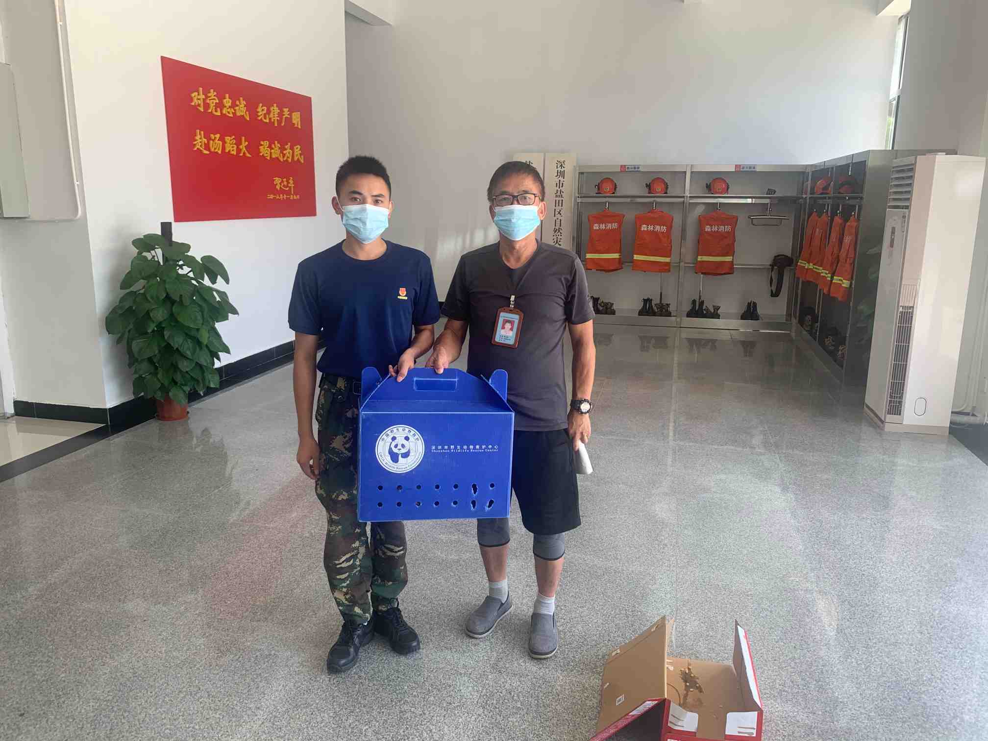 9月10日上午,接森林公安东部大队电话,在梅沙派出所有一只受伤的蛇雕需要救助。盐田区森防大队立即派人前往梅沙派出所将受伤蛇雕接收到森防基地,同时联系野生动物救助中心,现已移交给野生动物救助中心工作人员。