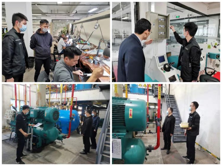 (三)第三组对深圳市赛欧珠宝首饰有限公司和宇光实业(深圳)有限公司开展专项督查。重点对企业疫情防控措施及规章制度落实情况进行了督查。检查发现:1.安全生产“一线三排”告知栏内容未及时更新;2.机织链车间员工未佩戴耳塞(该区域噪声超过国家规定标准)。 督查组要求企业立即整改,及时消除事故隐患。