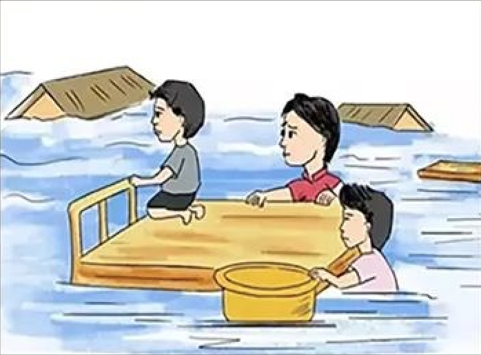 如山洪继续上涨,暂避的地方难以自保,迅速找一些门板、木床、大块泡沫等能漂浮的材料扎成筏逃生。